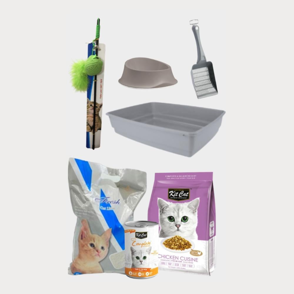 مجموعة التوفير مكونه من 7 اصناف اساسيةحوض رمل صغير سكوب رملرمل 5 لتر رائحة عشوائيةدراي فود كت كات بالدجاج 1.2 كيلو1 طعام رطب كت كات تونه وسالمون2 صحن للأكل والشرب لعبة سناره